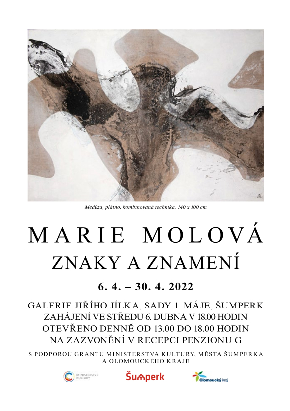 Marie Molová se do galerie vrací po pětadvaceti letech, stálá ve své proměnlivosti. Všechno je pro ni konečným cílem i zdrojem novotvarů. Vrací se k nim a proto ani datování tu nerozhoduje. Vychází z bezprostředně viděného, aby se následným dělením, přesouváním, otáčením a propojováním částí svých dřívějších kreseb, frotáží kopírovaných na tenké průsvitné papíry a jejich nahodilým opakováním a vrstvením od původního stavu vzdalovala. Jeho „komolením“ dostává se na samou hranu rozpoznatelnosti. Mění ho do podoby obrazu světa ve stavu zrodu. Rozpuštěním věcných tvarů v nezřetelnosti, blízké matoucímu snu, míří k jiné, spíš jen vytušené srozumitelnosti, známé z dětského kaleidoskopu. Své kresbomalby sestavuje tak, aby se z nich samovolně vynořily skryté, významově rozvolněné polohy výpovědi a vytváří z nich abecedu vlastní řeči tajemných znamení a znaků. Používá k tomu techniku xero(ko)láže.